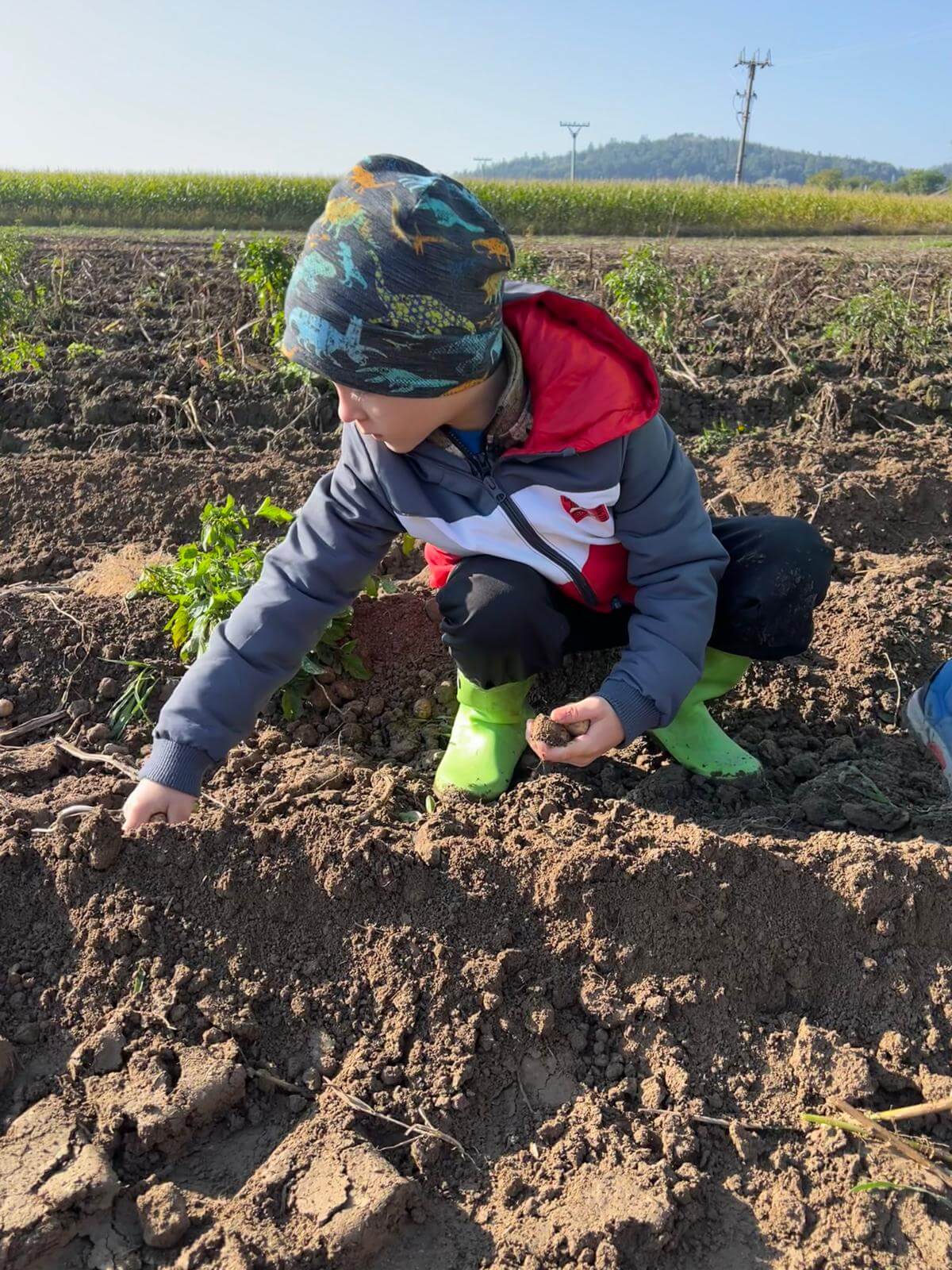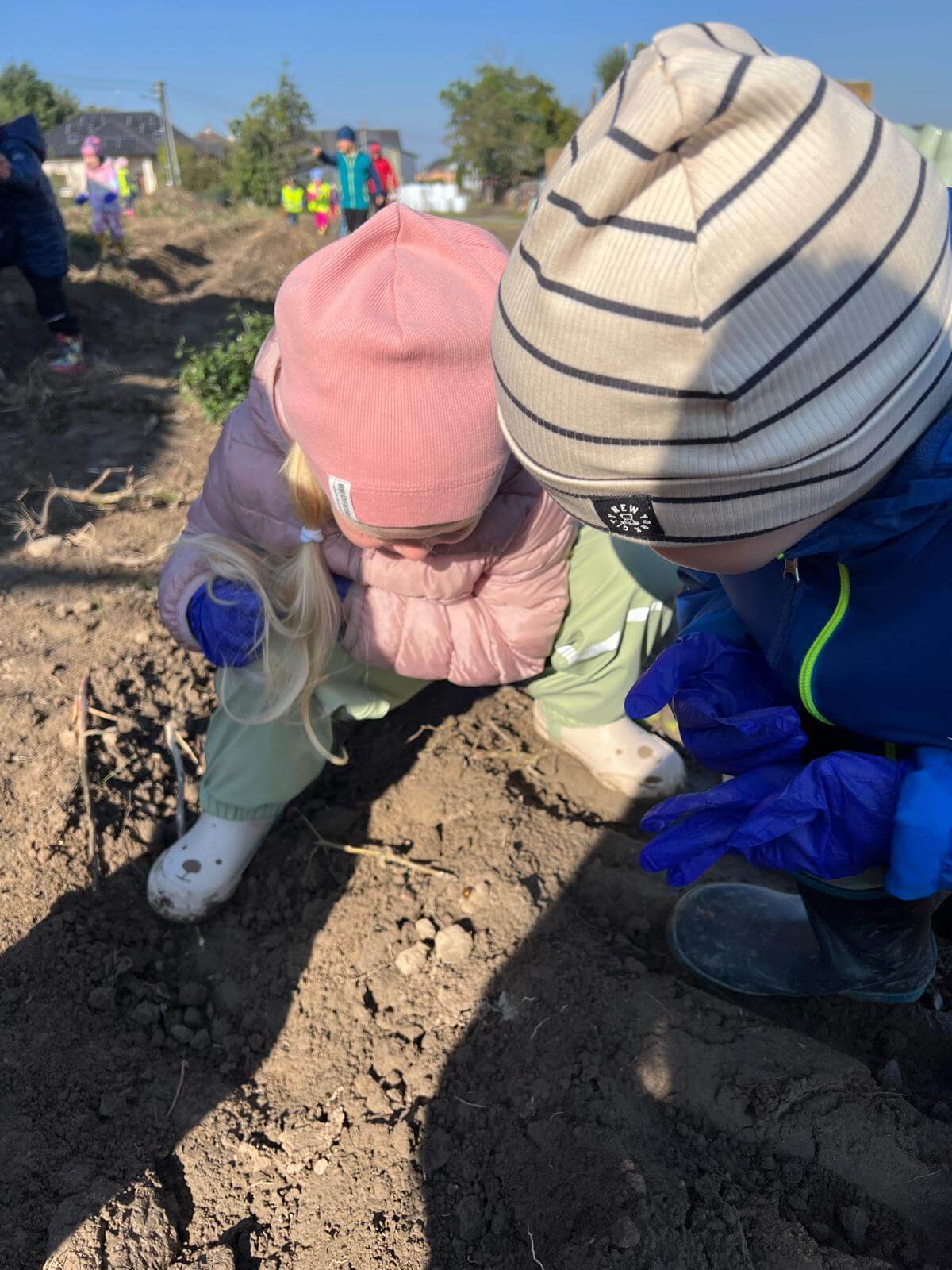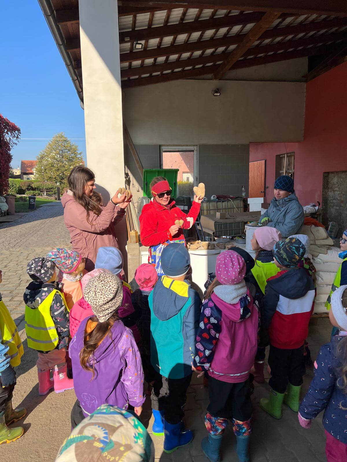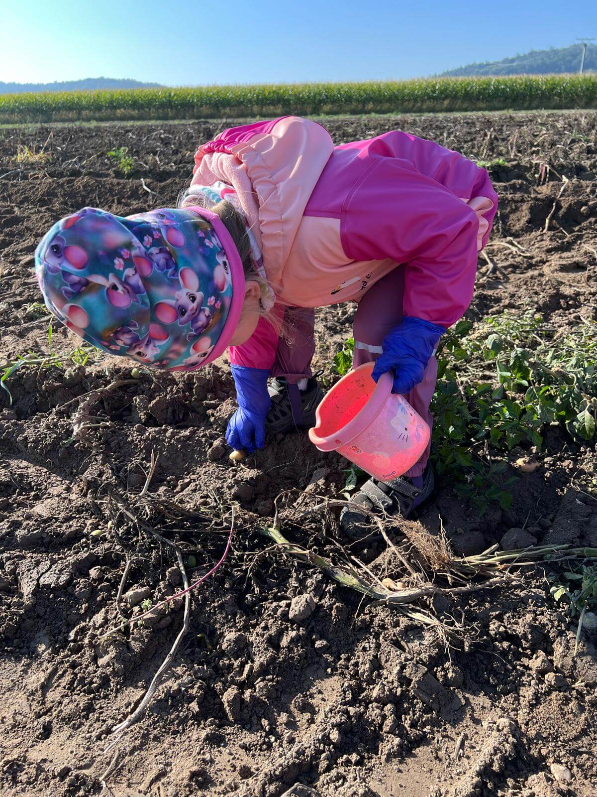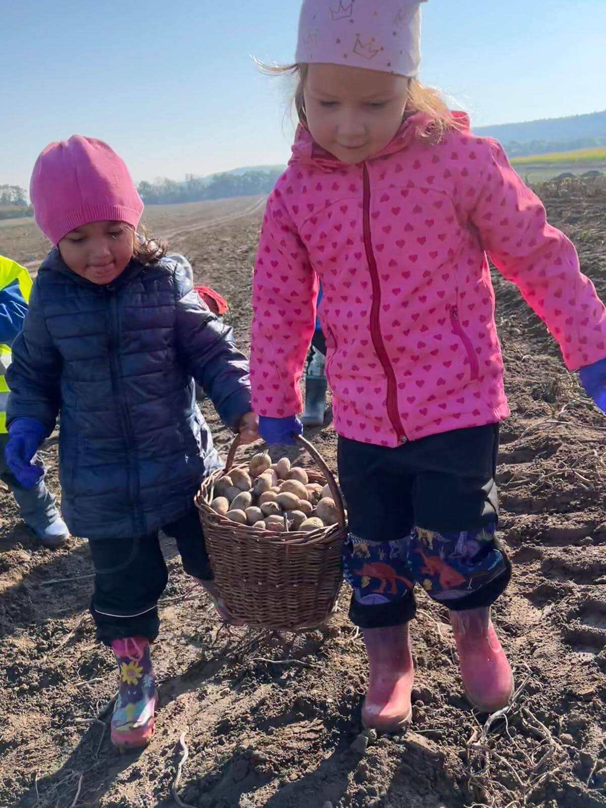 V pátek 3. 10. 2025 jsme se v rámci týdenního tématu vydali s dětmi ze třídy Berušky a Včelky na statek a pole rodiny Malohlavovi. Hned po příchodu na statek děti mohly vidět velký traktor a paní Danka Malohlavová si pro děti nachystala ochutnávku domácí mrkve a papriky a ukázala dětem nasbírané brambory ve tvaru srdíčka. Cestou na pole děti s obdivem a respektem pozorovaly malé i velké býky, různé zemědělské storoje jako traktory, vlečky a kombajny a hádaly, k čemu stroje slouží. Při příchodu na pole mohly děti už z dálky vidět stroj, jak zpracovává půdu a za ním si samy nasbíraly brambory do kyblíků. Kromě brambor viděly i trhání mrkve z řádku a pár mrkviček si odnesly i do mateřské školy, kde si na nich společně pochutnaly. Na závěr každý dostal malý balíček brambor, které si samy nasbíraly. Děti odcházely s úsměvem, plní zážitků a nových poznatků o tom, jak to na statku a na poli chodí. Tento den byl plný zábavy a radosti z objevování a my za tento zážitek moc děkujeme statku Malohlavovi. Veronika Smetanová