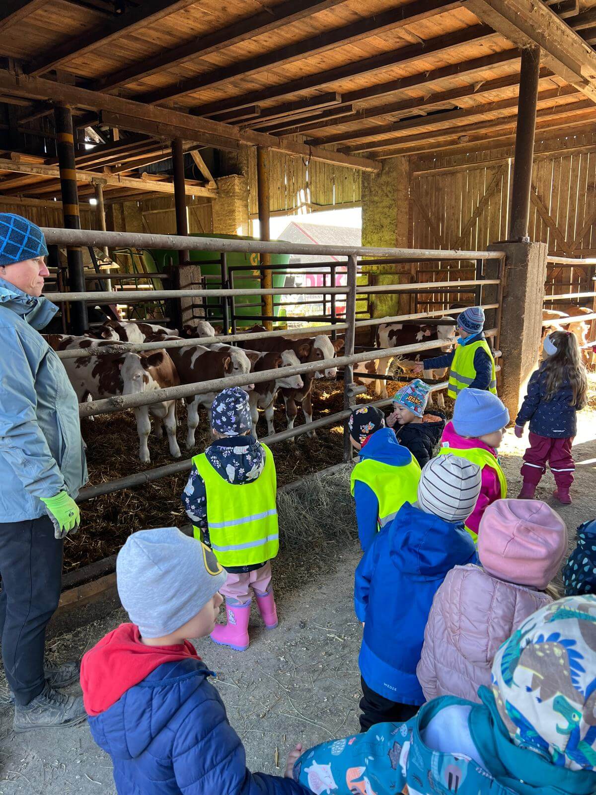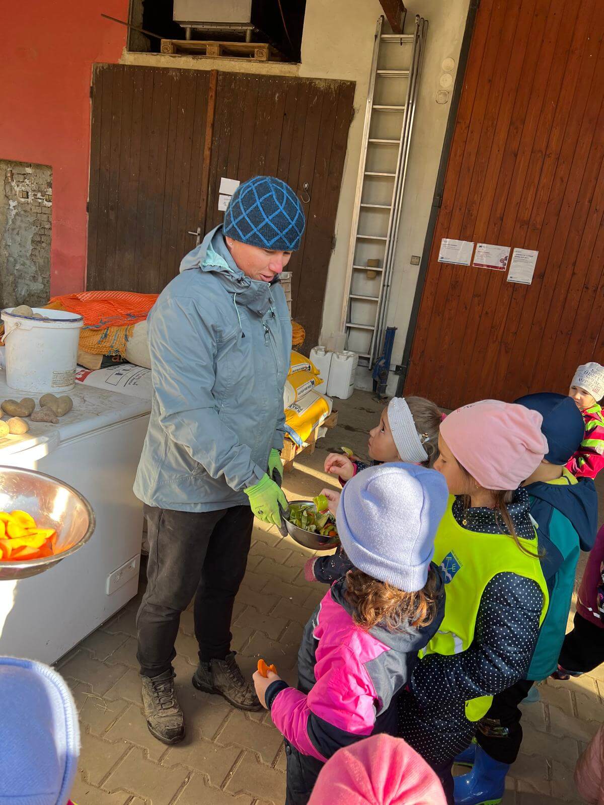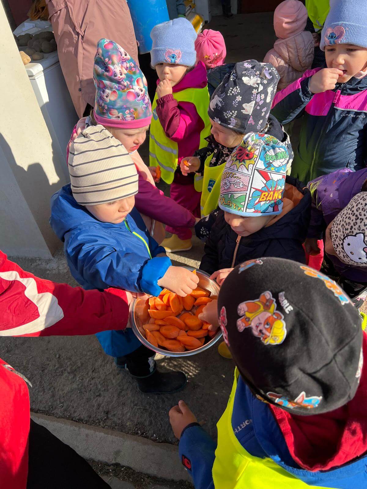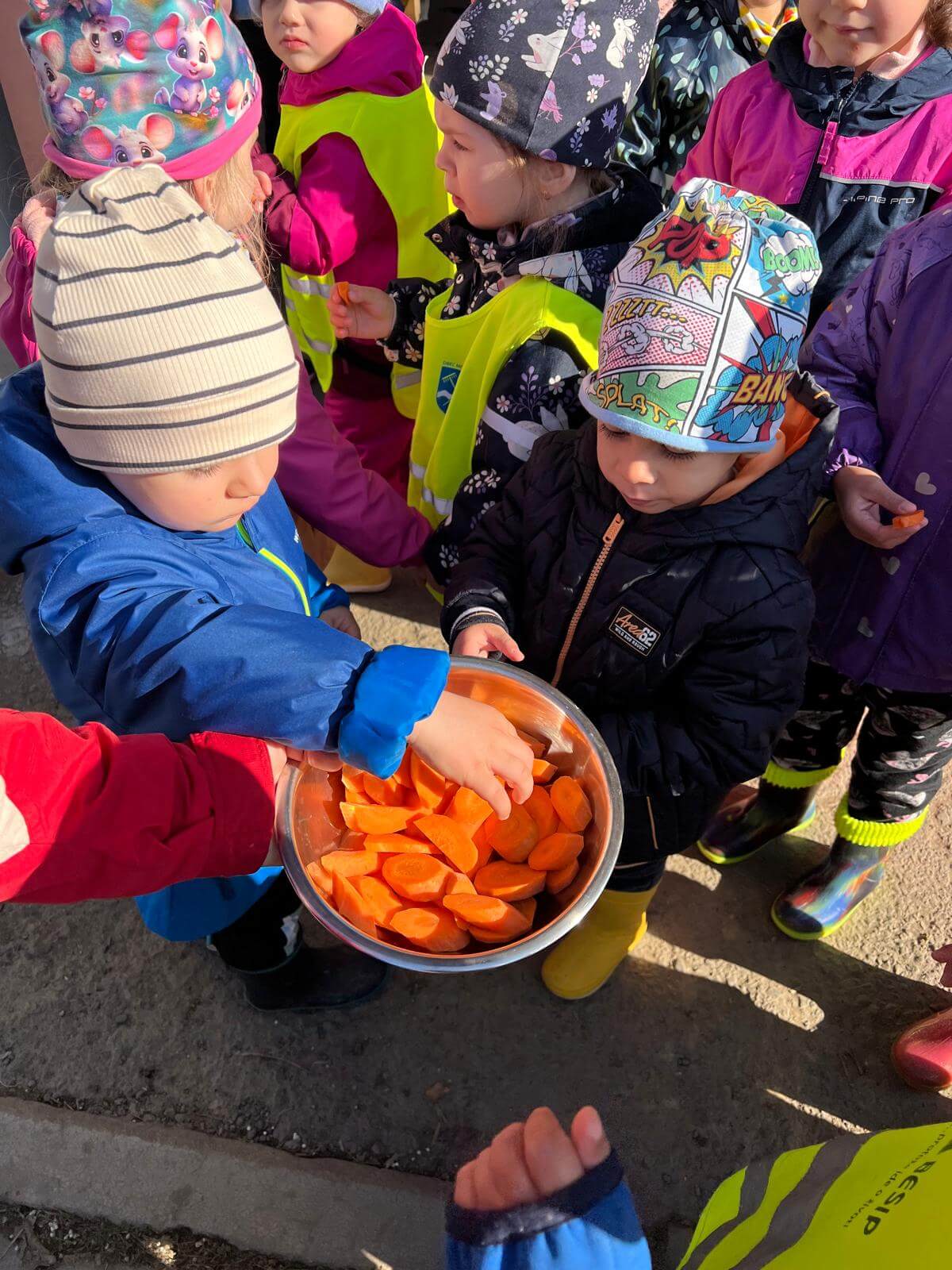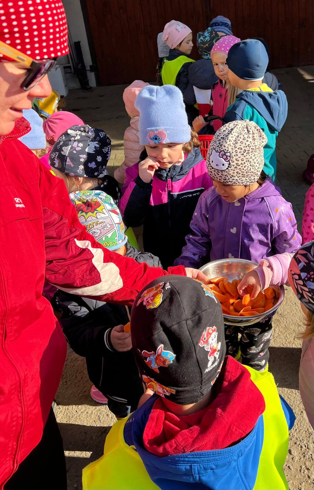 V pátek 3. 10. 2025 jsme se v rámci týdenního tématu vydali s dětmi ze třídy Berušky a Včelky na statek a pole rodiny Malohlavovi. Hned po příchodu na statek děti mohly vidět velký traktor a paní Danka Malohlavová si pro děti nachystala ochutnávku domácí mrkve a papriky a ukázala dětem nasbírané brambory ve tvaru srdíčka. Cestou na pole děti s obdivem a respektem pozorovaly malé i velké býky, různé zemědělské storoje jako traktory, vlečky a kombajny a hádaly, k čemu stroje slouží. Při příchodu na pole mohly děti už z dálky vidět stroj, jak zpracovává půdu a za ním si samy nasbíraly brambory do kyblíků. Kromě brambor viděly i trhání mrkve z řádku a pár mrkviček si odnesly i do mateřské školy, kde si na nich společně pochutnaly. Na závěr každý dostal malý balíček brambor, které si samy nasbíraly. Děti odcházely s úsměvem, plní zážitků a nových poznatků o tom, jak to na statku a na poli chodí. Tento den byl plný zábavy a radosti z objevování a my za tento zážitek moc děkujeme statku Malohlavovi. Veronika Smetanová