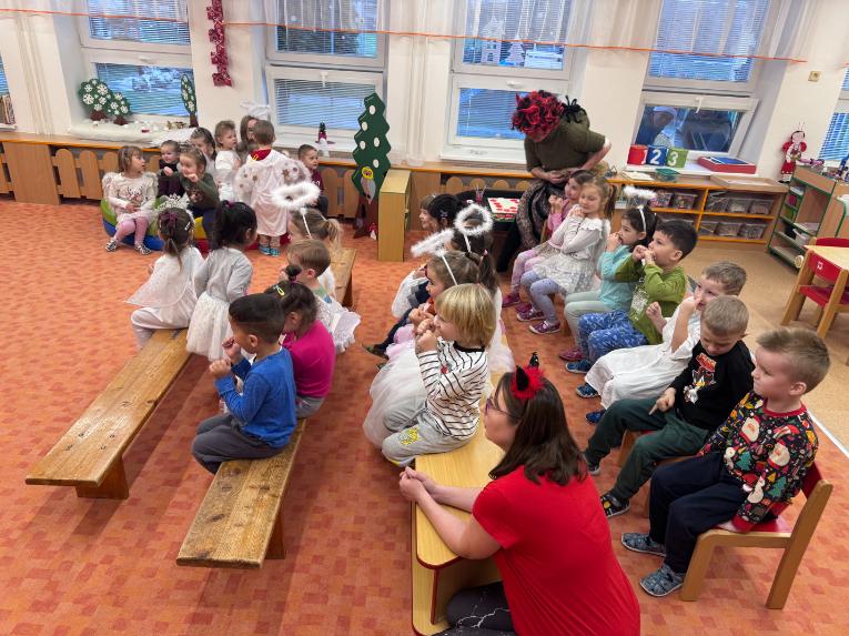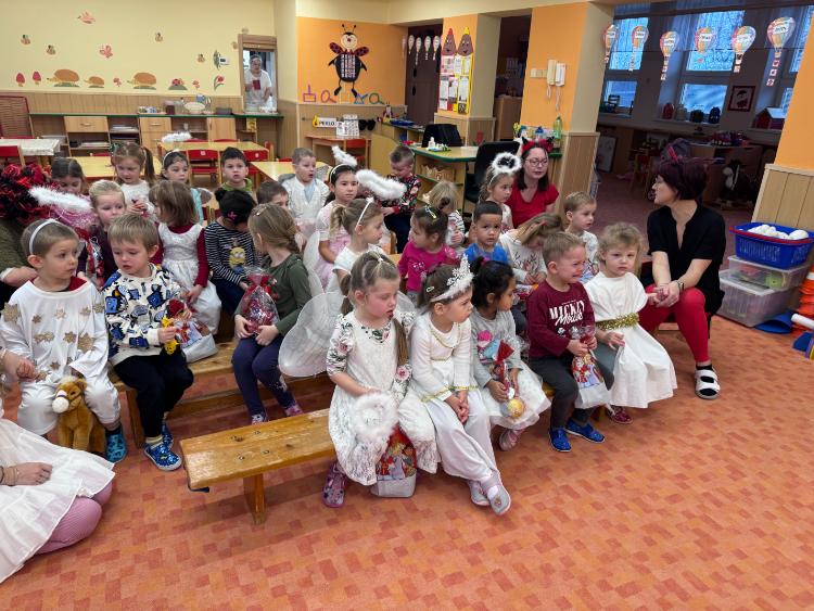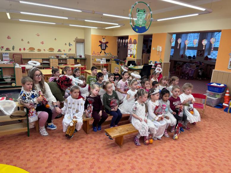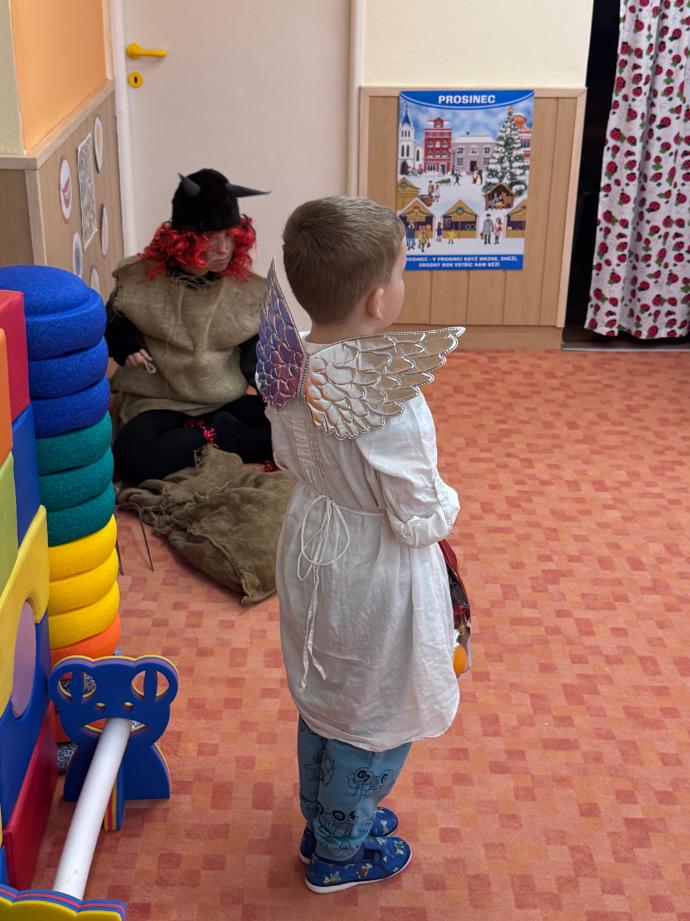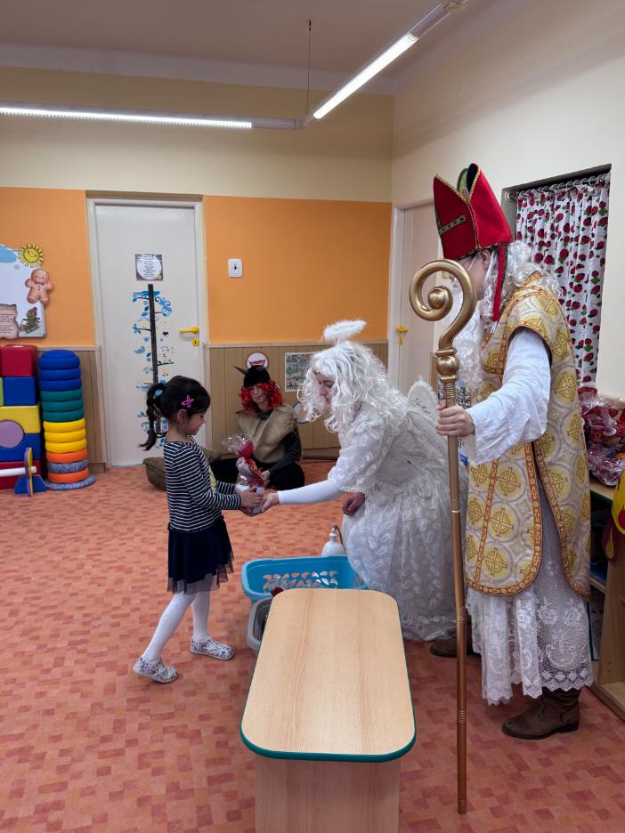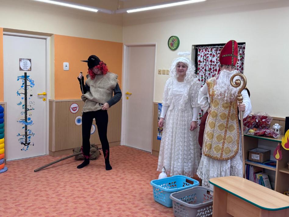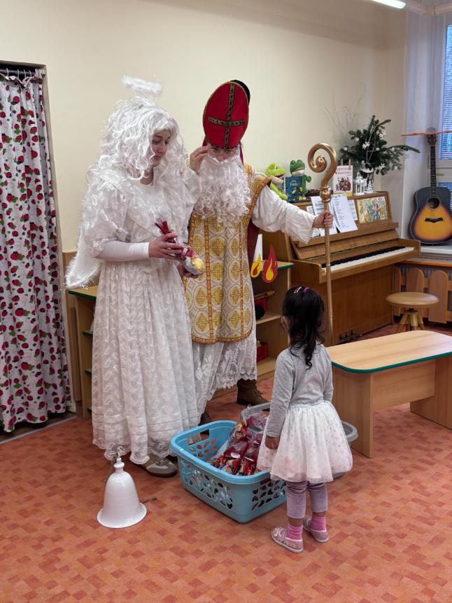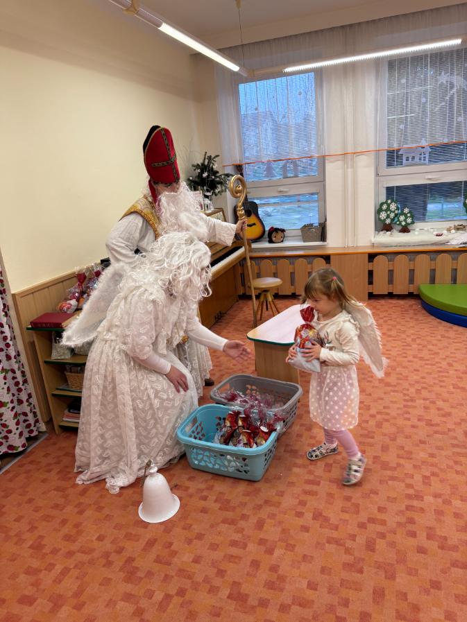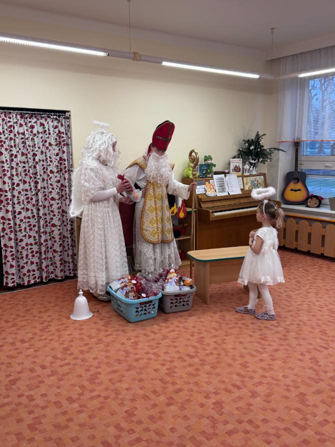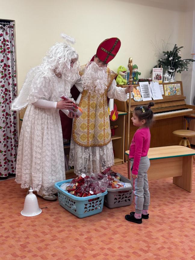 V pátek zavítal do naší mateřské školy dlouho očekávaný host – Mikuláš, kterého doprovázel anděl a samozřejmě také čert. Děti se na setkání pilně připravovaly, naučily se písničku pro čerta a básničky pro Mikuláše a anděla. Když se otevřely dveře a vstoupila celá mikulášská trojice, ozvalo se překvapení, smích, ale i pár nesmělých zamrkání. Mikuláš děti přivítal a pochválil je za to, jak jsou šikovné a jak si spolu pěkně hrají. Děti postupně předvedly, co si připravily. Anděl vlídně chválil, čert vtipně postrašil, ale nikoho nevyděsil. Za své vystoupení dostaly děti balíček se sladkostmi a ovocem. Návštěva Mikuláše přinesla do školky radost, úsměvy a také trochu tajemného kouzla, které k tomuto období neodmyslitelně patří. Dětem zůstaly krásné vzpomínky a těší se, že i příští rok Mikuláš opět zavítá mezi ně. Renata Žižlavská
