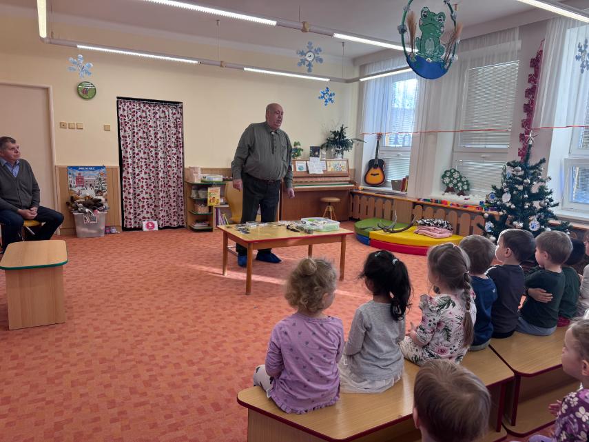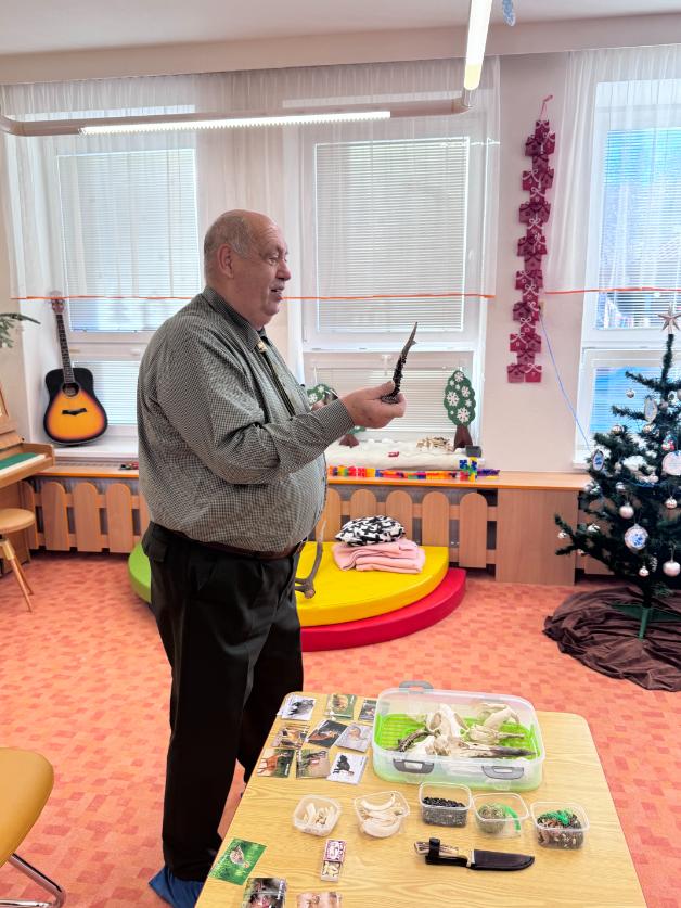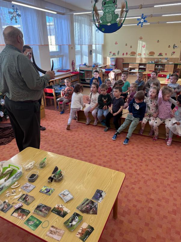 Rádi bychom se s vámi podělili o hezký zážitek z naší mateřské školy. Navštívil nás pan myslivec, který si pro děti připravil velmi zajímavé a poučné povídání o životě lesních zvířátek. Děti se dozvěděly mnoho zajímavostí o tom, jak zvířata v lese žijí, čím se živí, jak se o ně myslivci starají a jaká potrava patří do krmeliště. Největším lákadlem byla ukázka skutečných parůžků, lebek a zubů některých lesních zvířat, které si děti mohly zblízka prohlédnout. Beseda byla prokládána lidovými písněmi za doprovodu akordeonu. Pan myslivec si pro děti připravil malý dárek – každý dostal obrázek lesního zvířátka, který jim bude tuto milou návštěvu připomínat. Děkujeme panu myslivci za poutavou návštěvu a těšíme se na další podobná setkání, která dětem přibližují přírodu a učí je lásce k lesu a zvířatům. Kateřina Černínová