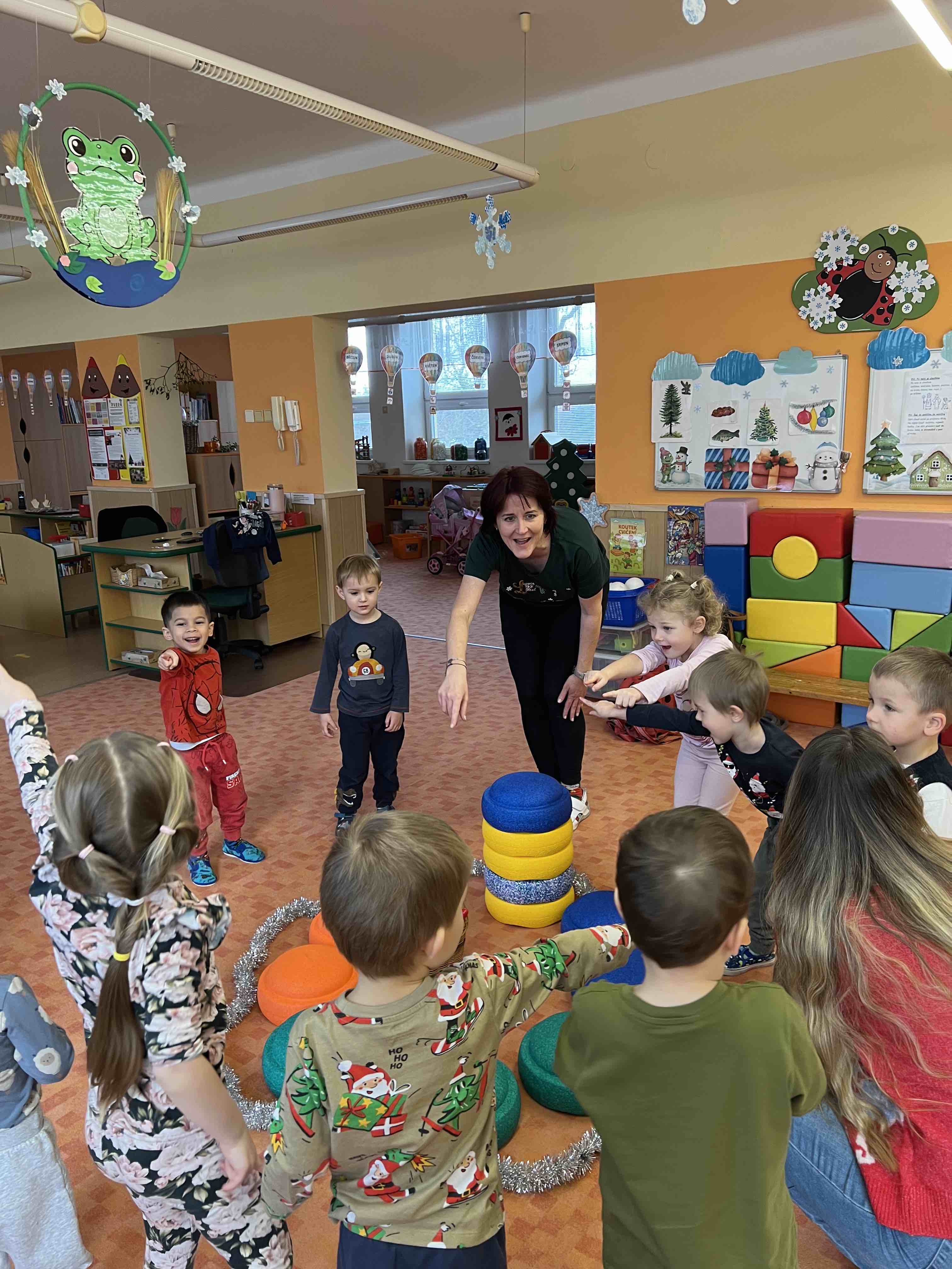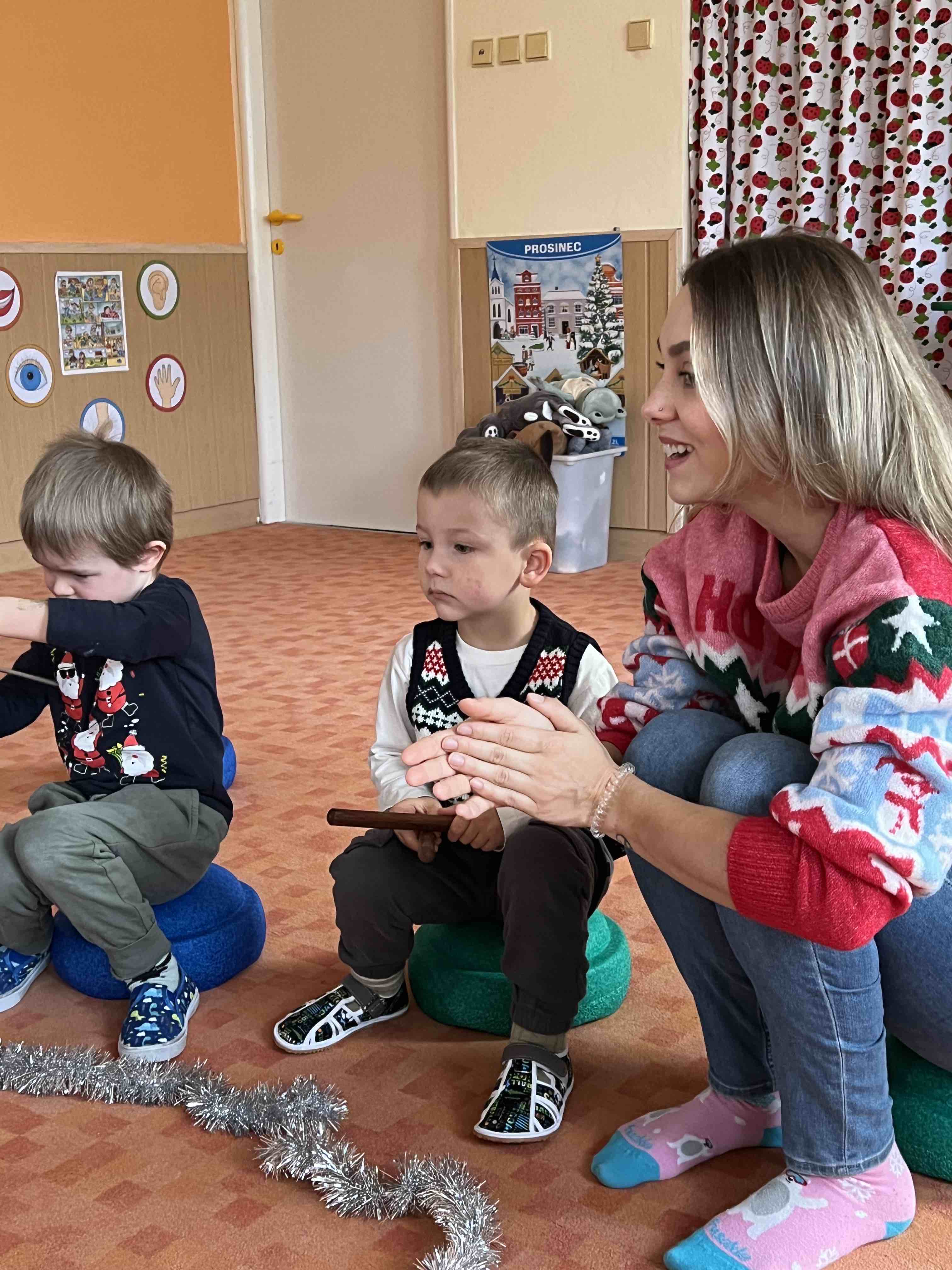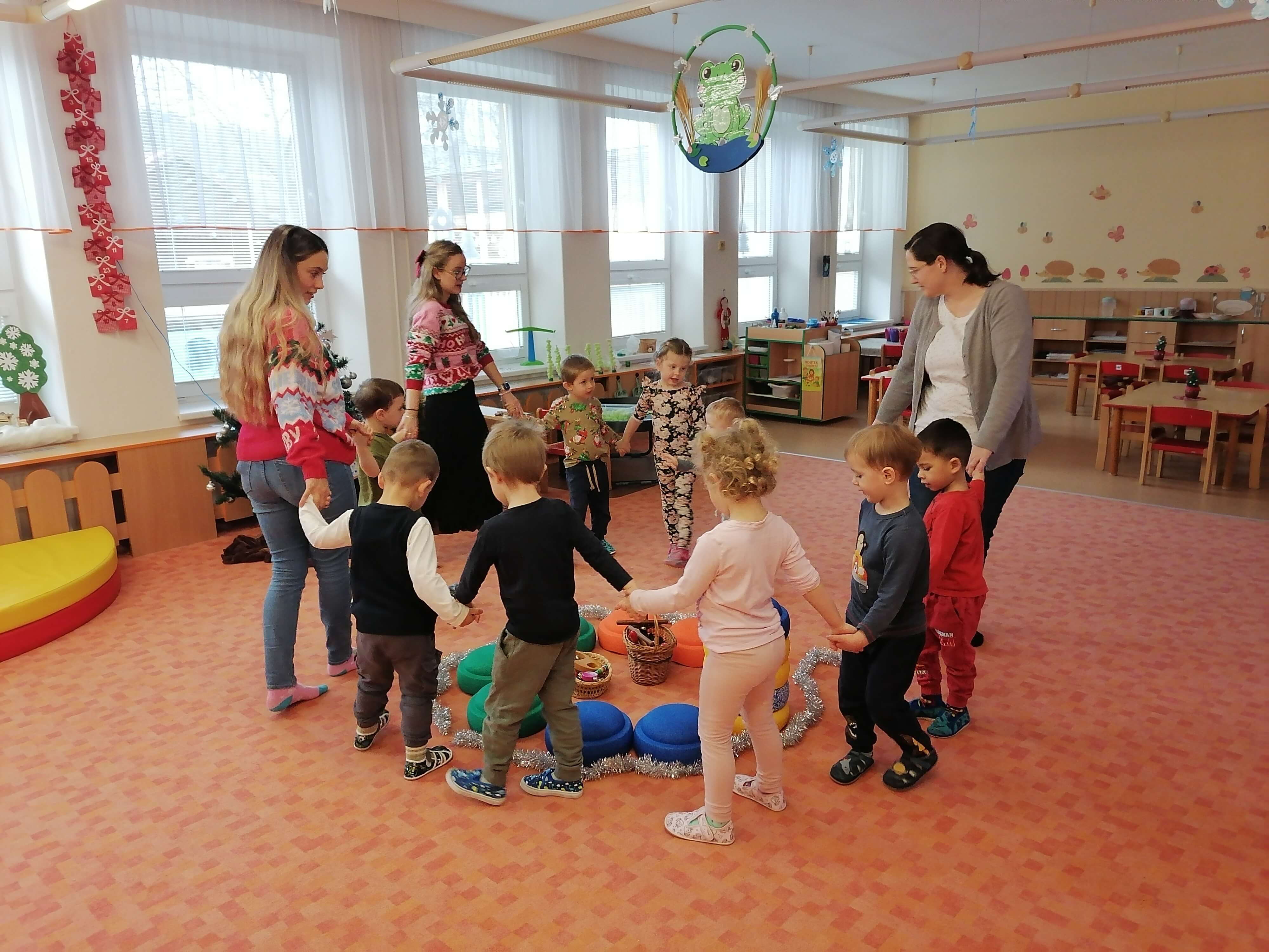 V předvánočním adventním čase se v naší mateřské škole uskutečnilo další adaptační setkání nových rodičů s dětmi, tentokrát v kouzelné atmosféře u vánočního stromečku. Přestože se z různých důvodů nemohli setkání zúčastnit všichni zákonní zástupci, i v menším počtu jsme společně prožili milé a klidné dopoledne naplněné vánoční náladou. Děti jsme spolu s maminkami slavnostně přivítali v kruhu říkankou „Kamarádi, pojďte ke mně“, která pomohla navodit pocit bezpečí a sounáležitosti. Poté jsme si společně prohlédli adventní věneček a zapállili tří svíčky. Ke sváteční atmosféře přispěl i společný zpěv vánočních koled, při němž se děti aktivně zapojily do hry na Orffovy hudební nástroje. Zopakovali jsme si pohybovou říkanku „Andílek si nebem letí“ i pohybové ztvárnění písně „Vánoční“, které dětem umožnilo propojit hudbu s pohybem a vlastním prožitkem. Součástí programu byla rovněž pohybová hra „Svíčky na adventním věnci“. Během setkání měly děti prostor i pro volnou hru za podpory rodičů. Na závěr jsme se s dětmi i rodiči rozloučili a popřáli jim šťastné a pohodové prožití vánočních svátků. Kateřina Slivková