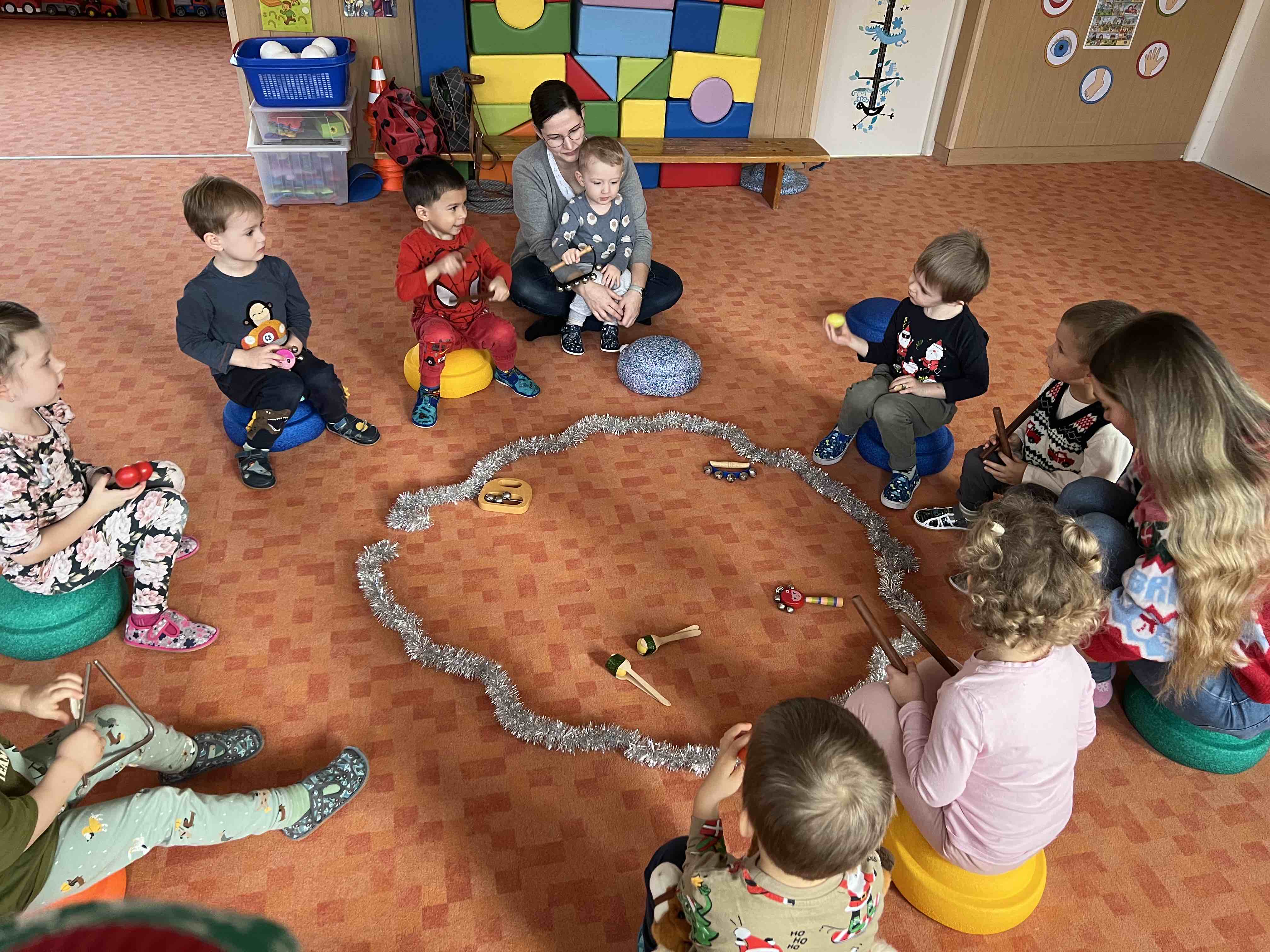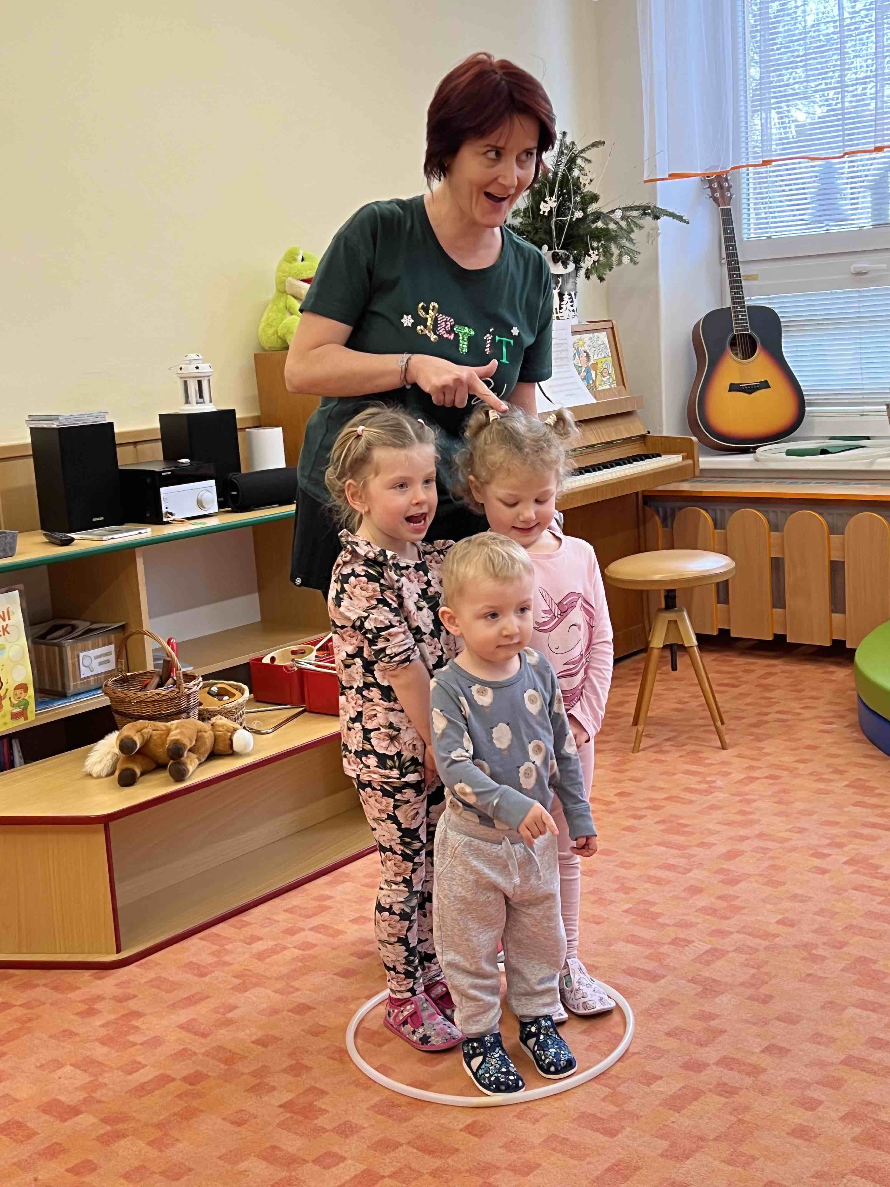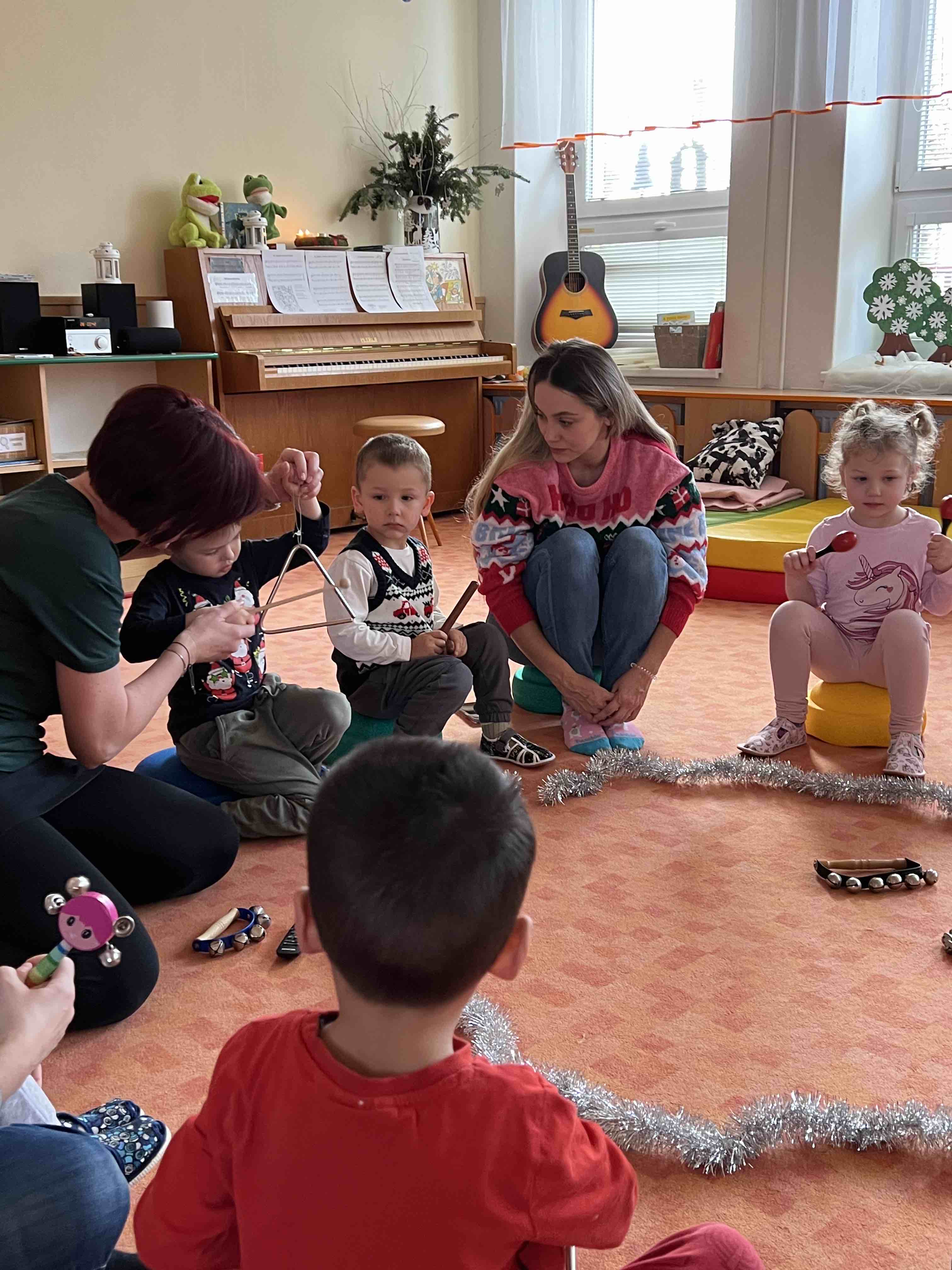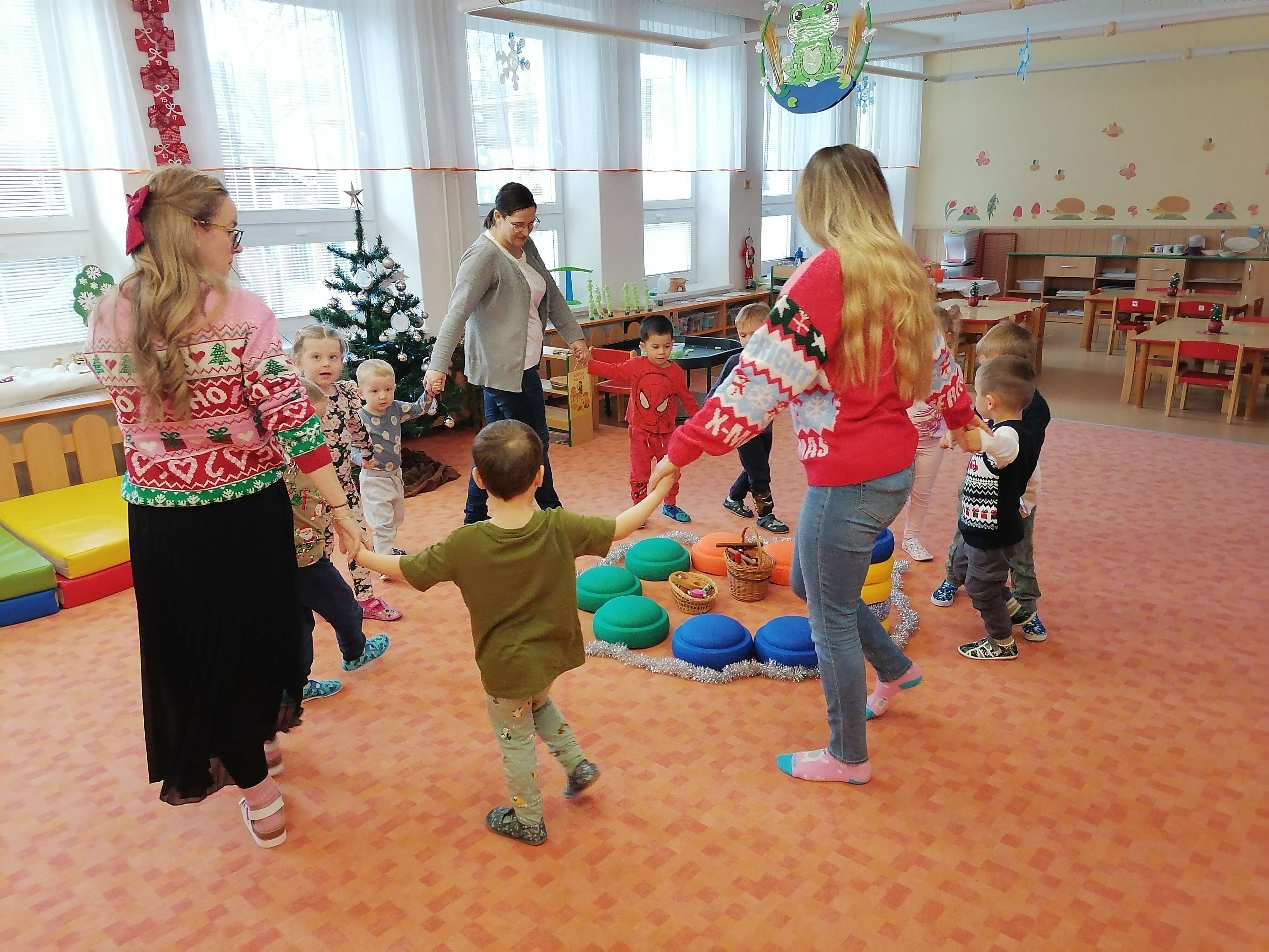 V předvánočním adventním čase se v naší mateřské škole uskutečnilo další adaptační setkání nových rodičů s dětmi, tentokrát v kouzelné atmosféře u vánočního stromečku. Přestože se z různých důvodů nemohli setkání zúčastnit všichni zákonní zástupci, i v menším počtu jsme společně prožili milé a klidné dopoledne naplněné vánoční náladou. Děti jsme spolu s maminkami slavnostně přivítali v kruhu říkankou „Kamarádi, pojďte ke mně“, která pomohla navodit pocit bezpečí a sounáležitosti. Poté jsme si společně prohlédli adventní věneček a zapállili tří svíčky. Ke sváteční atmosféře přispěl i společný zpěv vánočních koled, při němž se děti aktivně zapojily do hry na Orffovy hudební nástroje. Zopakovali jsme si pohybovou říkanku „Andílek si nebem letí“ i pohybové ztvárnění písně „Vánoční“, které dětem umožnilo propojit hudbu s pohybem a vlastním prožitkem. Součástí programu byla rovněž pohybová hra „Svíčky na adventním věnci“. Během setkání měly děti prostor i pro volnou hru za podpory rodičů. Na závěr jsme se s dětmi i rodiči rozloučili a popřáli jim šťastné a pohodové prožití vánočních svátků. Kateřina Slivková