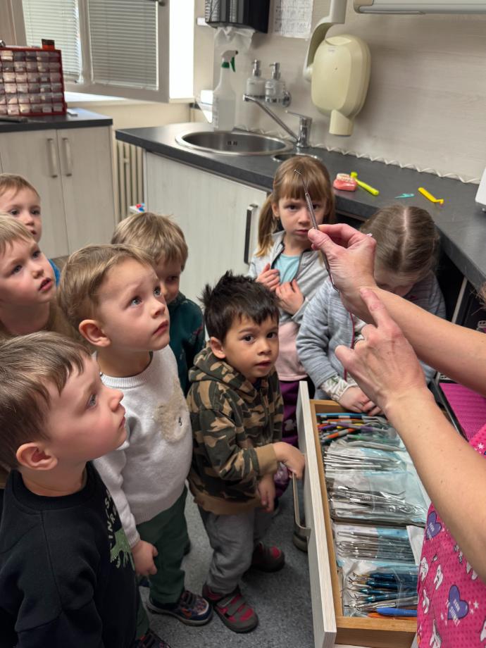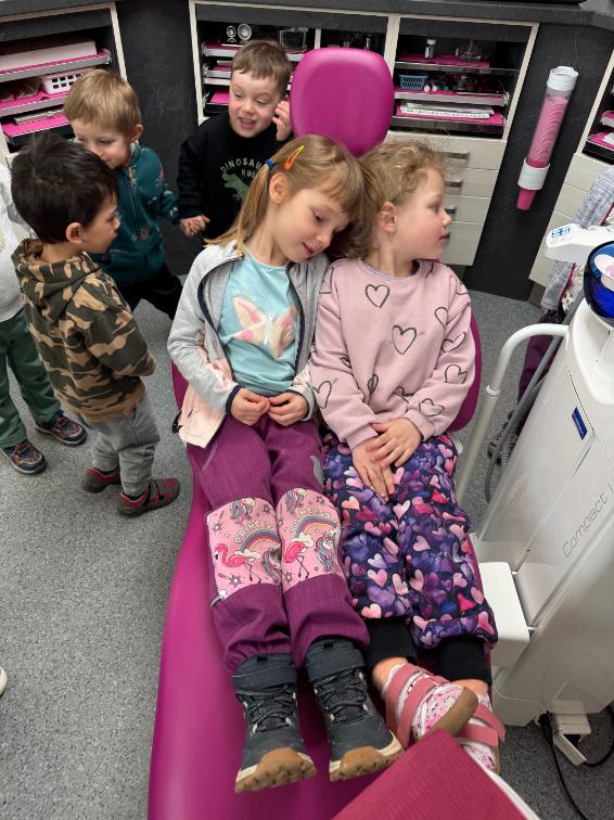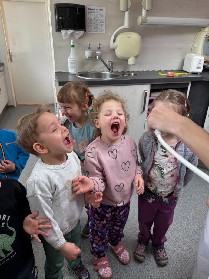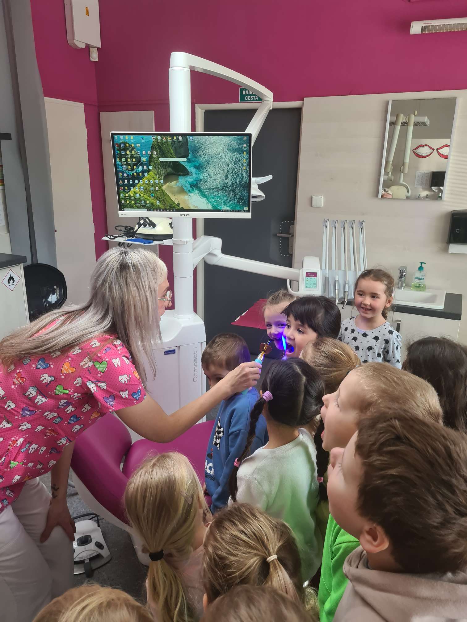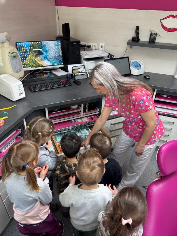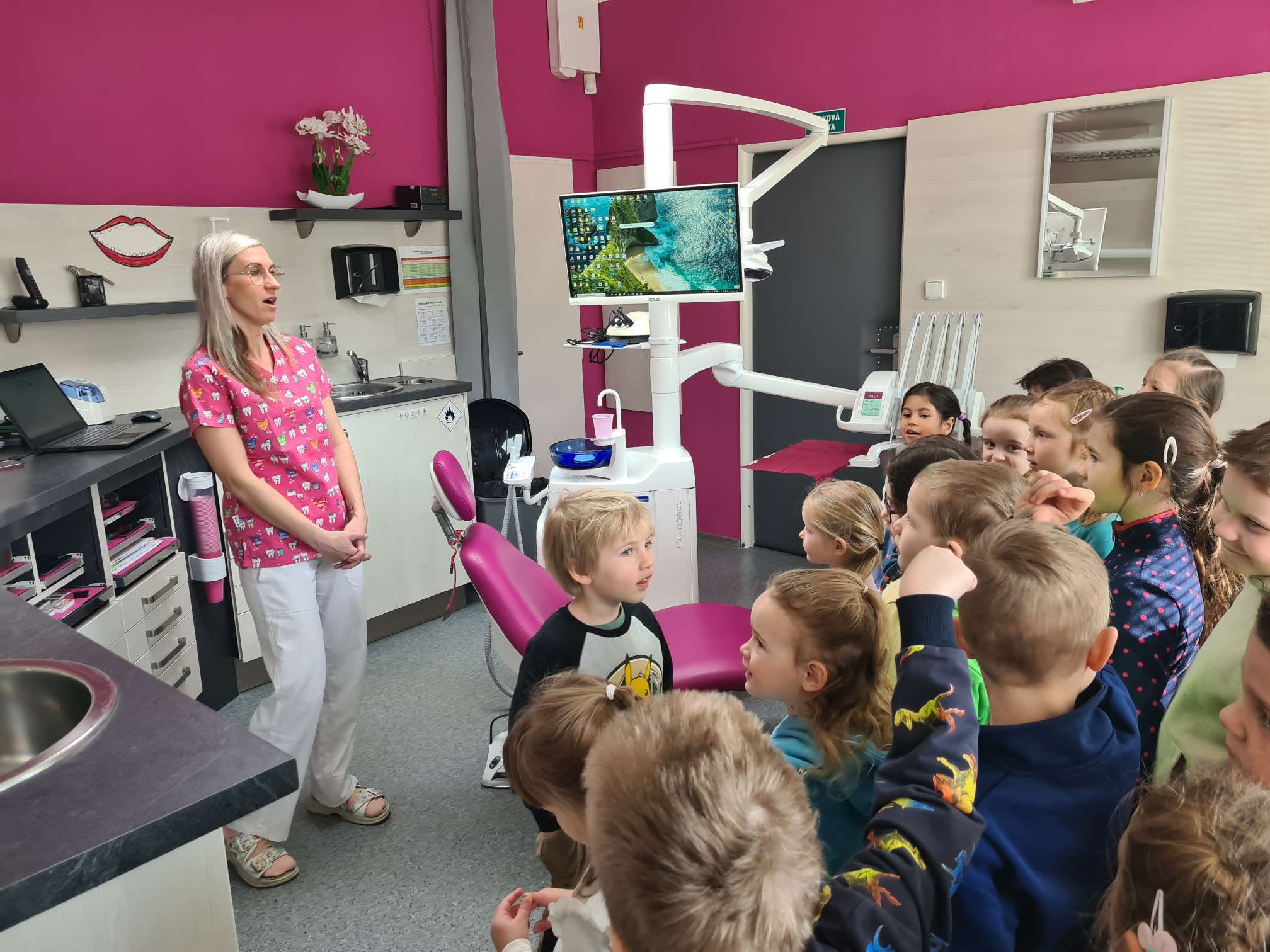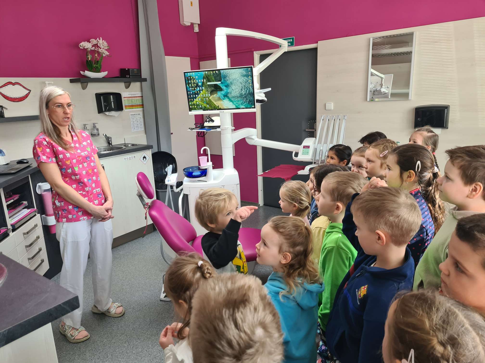 V rámci našeho tematického bloku zaměřeného na zdraví jsme se s dětmi z mateřské školy vydali na zajímavou a poučnou návštěvu místní zubní ordinace. Cílem bylo dětem přiblížit prostředí zubní ordinace a ukázat jim, že návštěvy u zubaře se nemusí vůbec bát. Paní Šimečková, sestřička paní zubařky, nás mile přivítala a připravila si pro děti krátké povídání o tom, jak se o zoubky starat a jak si je správně čistit. Velkým zážitkem pro děti bylo také seznámení s různými přístroji a pomůckami, které paní zubařka při své práci používá. Děti si mohly některé z nich zblízka prohlédnout a dozvědět se, k čemu slouží. Největší nadšení však vyvolalo zubařské křeslo – každý, kdo chtěl, si do něj mohl sednout a dokonce se na něm i povozit. Návštěva probíhala ve velmi přátelské atmosféře a děti odcházely z ordinace plné nových zážitků i poznatků. Na závěr dostaly na památku malý dáreček, který jim bude tuto milou návštěvu připomínat. Paní Šimečkové moc děkujeme za její čas, ochotu a krásné přijetí. Díky této návštěvě si děti odnesly nejen nové zkušenosti, ale také možná o trochu menší obavy z návštěvy zubní ordinace. Veronika Smetanová