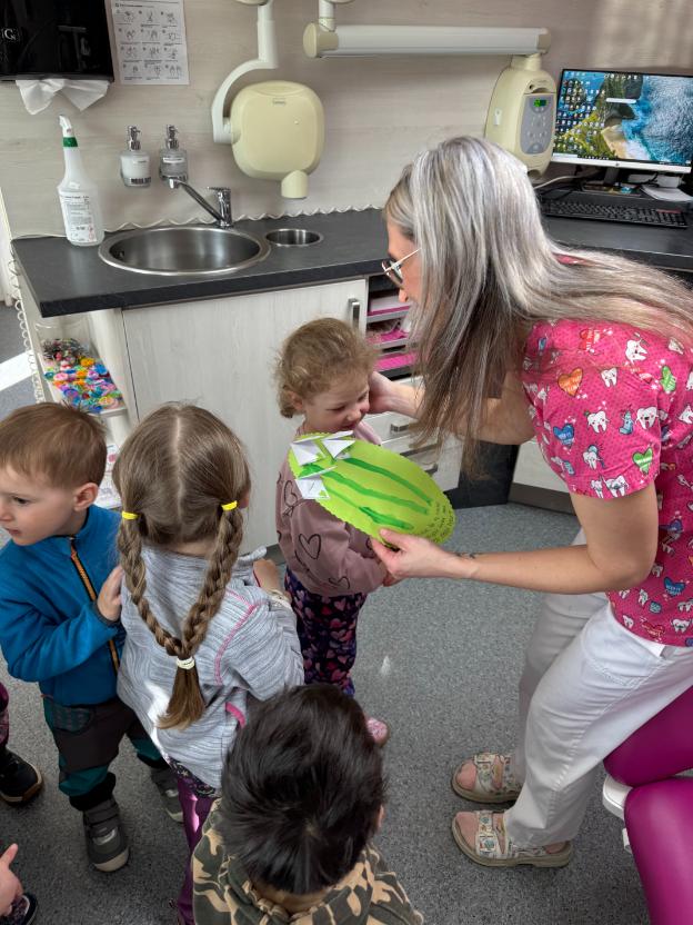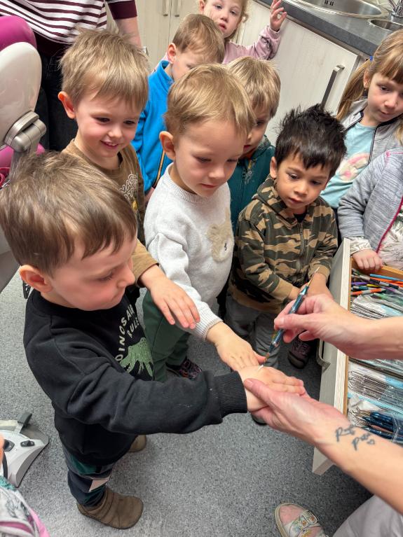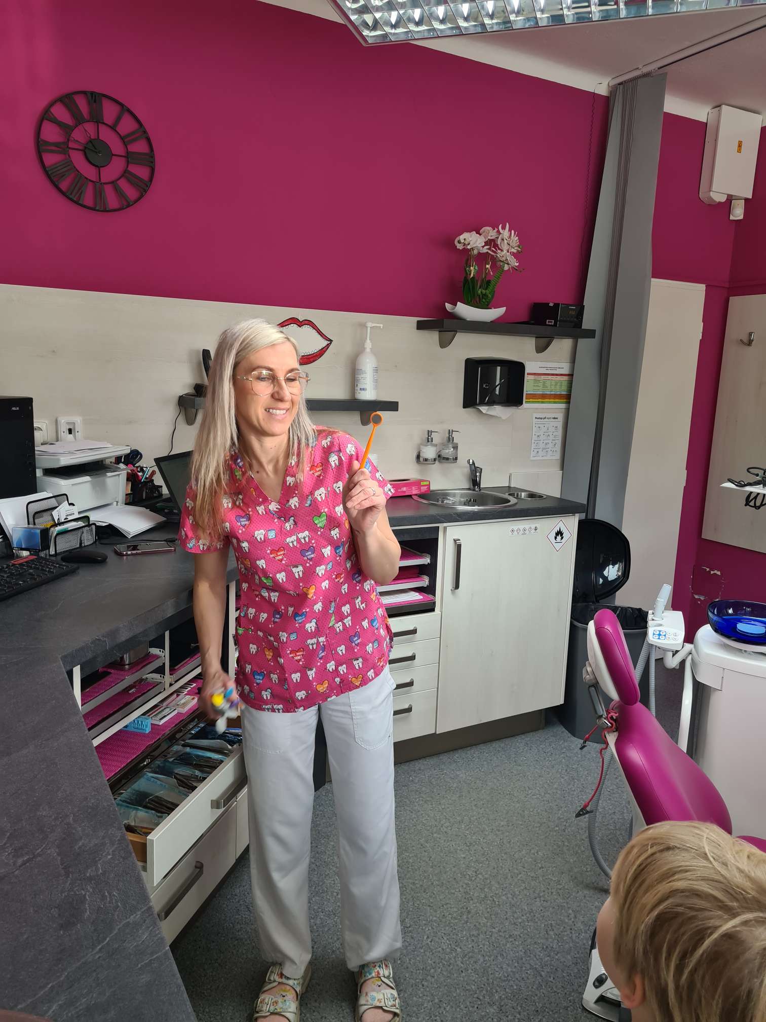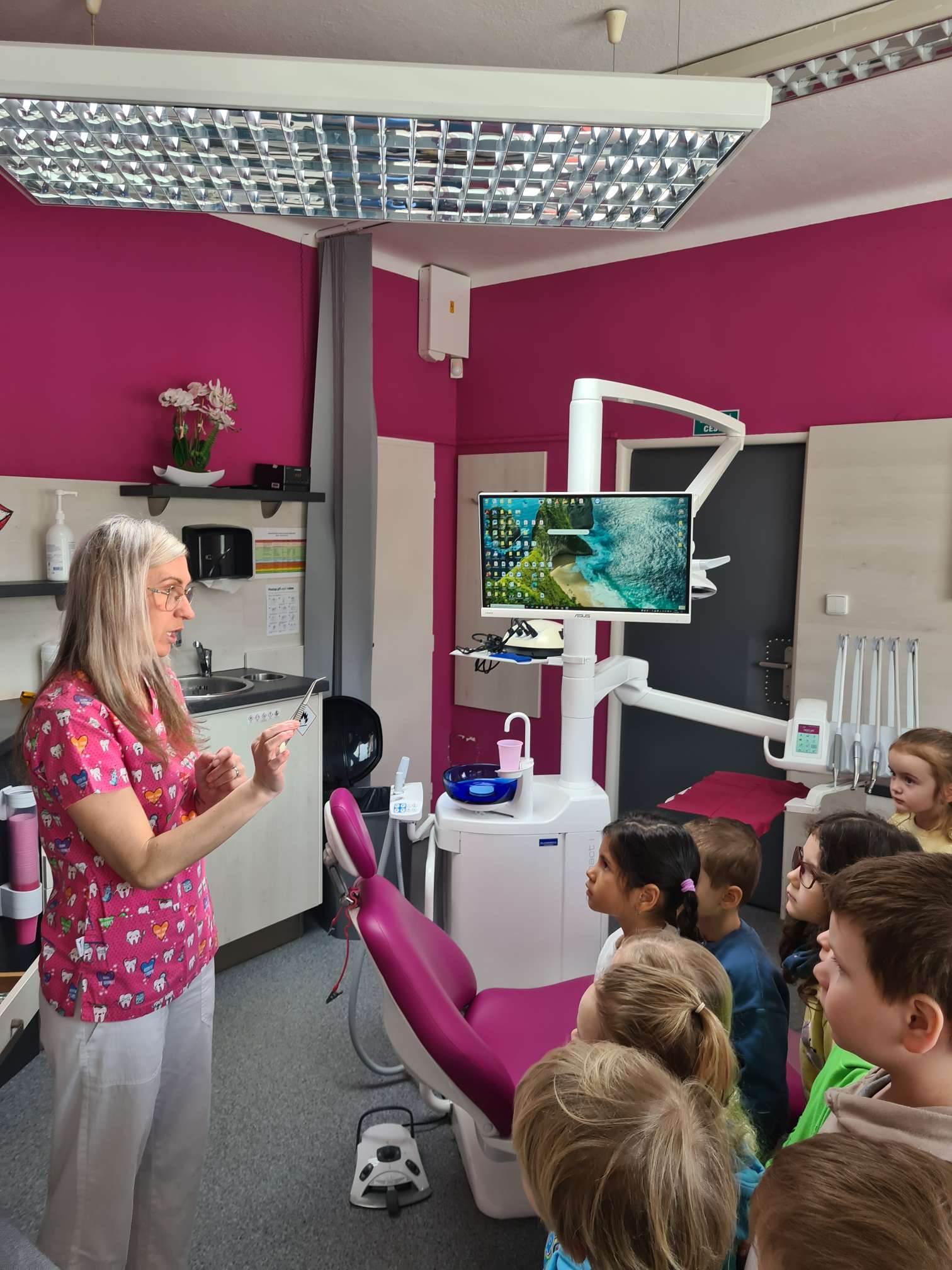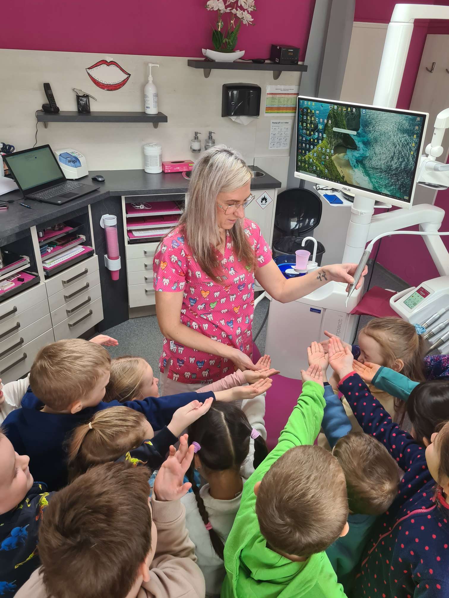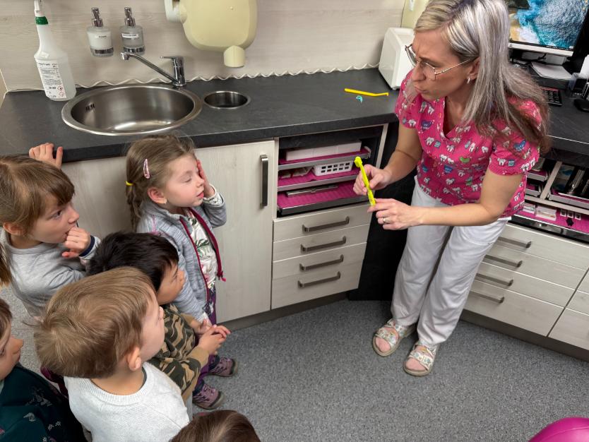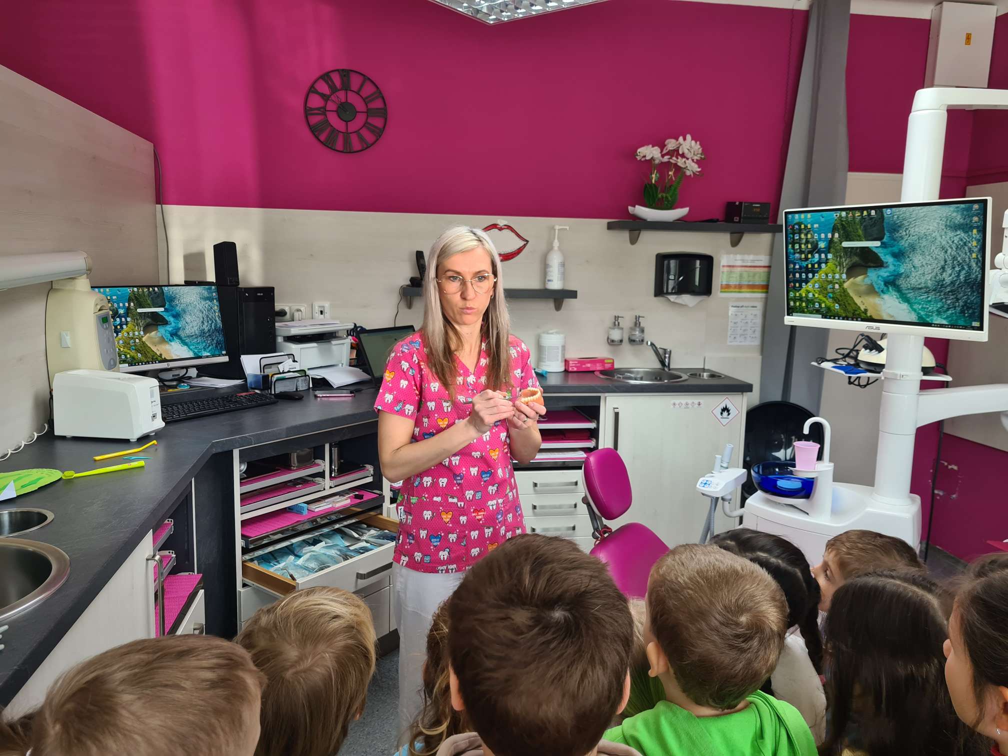 V rámci našeho tematického bloku zaměřeného na zdraví jsme se s dětmi z mateřské školy vydali na zajímavou a poučnou návštěvu místní zubní ordinace. Cílem bylo dětem přiblížit prostředí zubní ordinace a ukázat jim, že návštěvy u zubaře se nemusí vůbec bát. Paní Šimečková, sestřička paní zubařky, nás mile přivítala a připravila si pro děti krátké povídání o tom, jak se o zoubky starat a jak si je správně čistit. Velkým zážitkem pro děti bylo také seznámení s různými přístroji a pomůckami, které paní zubařka při své práci používá. Děti si mohly některé z nich zblízka prohlédnout a dozvědět se, k čemu slouží. Největší nadšení však vyvolalo zubařské křeslo – každý, kdo chtěl, si do něj mohl sednout a dokonce se na něm i povozit. Návštěva probíhala ve velmi přátelské atmosféře a děti odcházely z ordinace plné nových zážitků i poznatků. Na závěr dostaly na památku malý dáreček, který jim bude tuto milou návštěvu připomínat. Paní Šimečkové moc děkujeme za její čas, ochotu a krásné přijetí. Díky této návštěvě si děti odnesly nejen nové zkušenosti, ale také možná o trochu menší obavy z návštěvy zubní ordinace. Veronika Smetanová