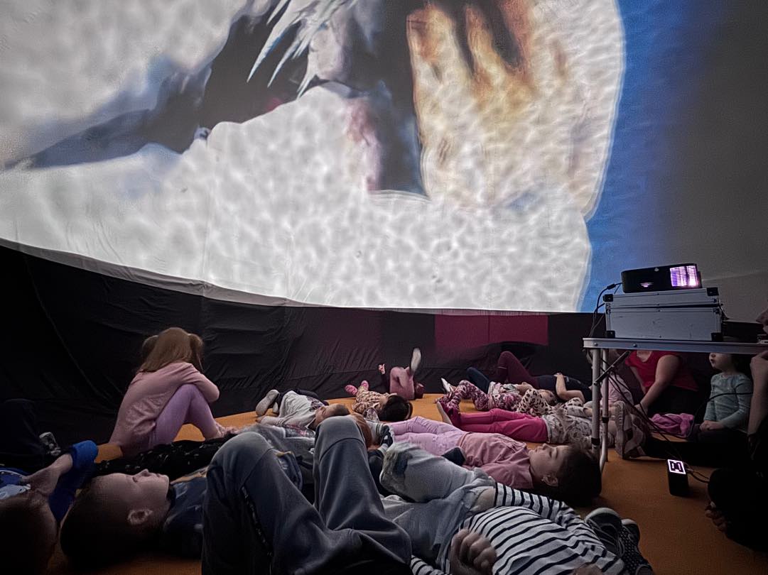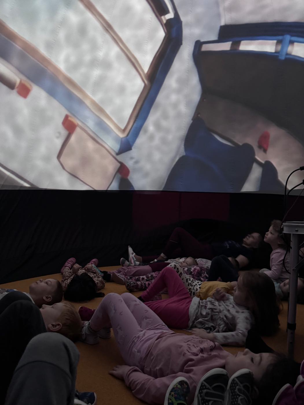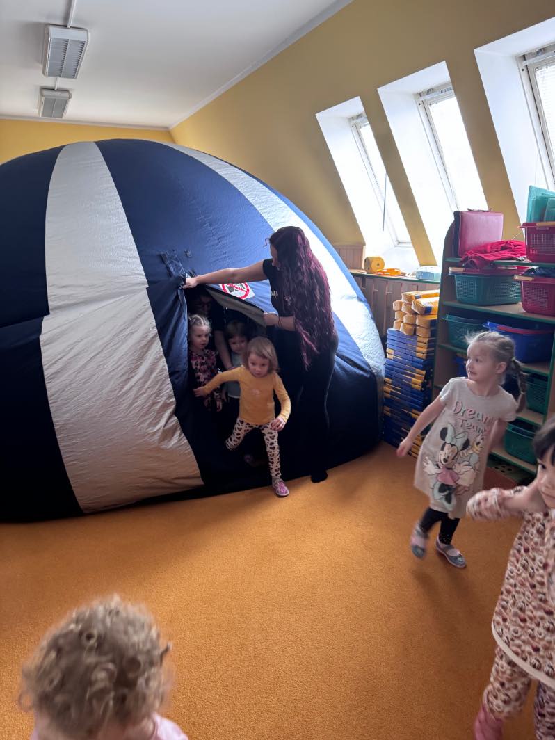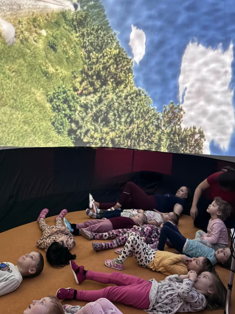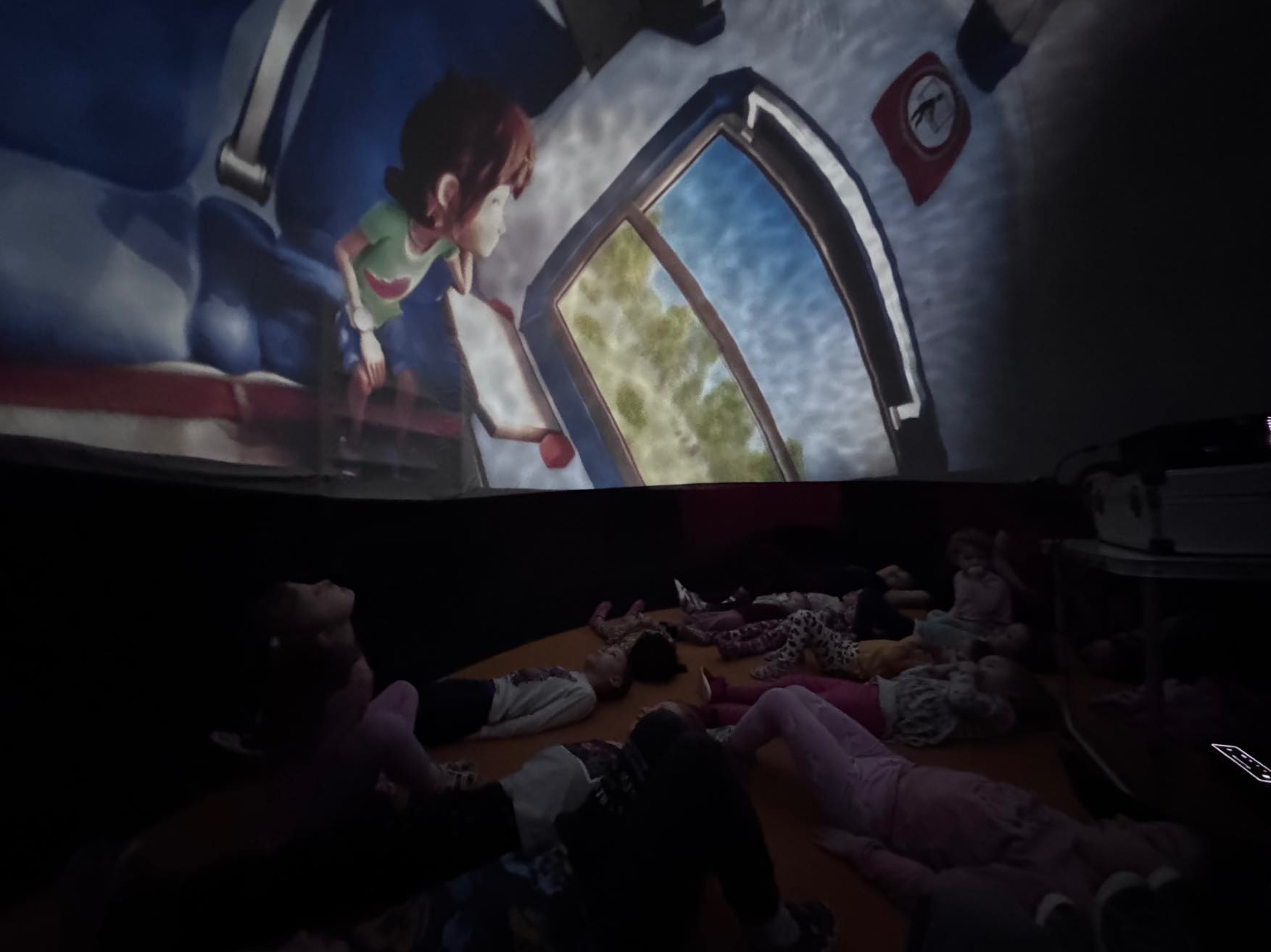 V pondělí 24. 2. proběhla v dopoledních hodinách vzdělávací projekce v technologii 360°, odhalující fakta o cestě slunce po obloze se změnami ročního období. Ve speciálním rozkládacím stanu, který po nafouknutí dostal tvar kopule, měly děti možnost zhlédnout příběh o malé holčičce, která se vydala na prázdniny k dědečkovi, kde poznávala rozmanitost počasí a světa kolem sebe. Děti měly možnost zažít pocit, jaké to je nacházet se v hrozivě ledových teplotách, ale i v perném horku. Promítání v tomto přenosném kině dětem umožnilo vzbudit zájem o okolní svět, a také doplnit znalosti a uspokojit svou zvědavost. Děti sledovaly projekci s velkým zájmem a byl to pro ně nevšední zážitek. Renata Žižlavská