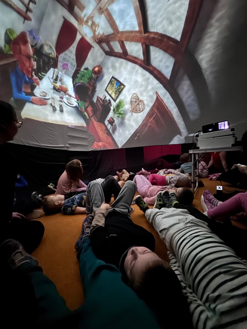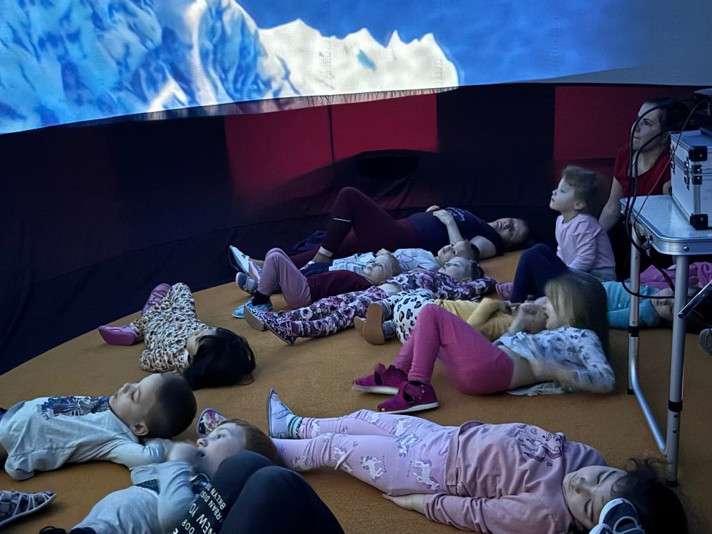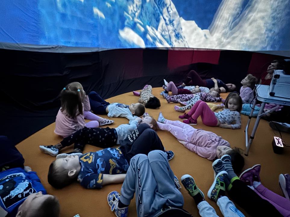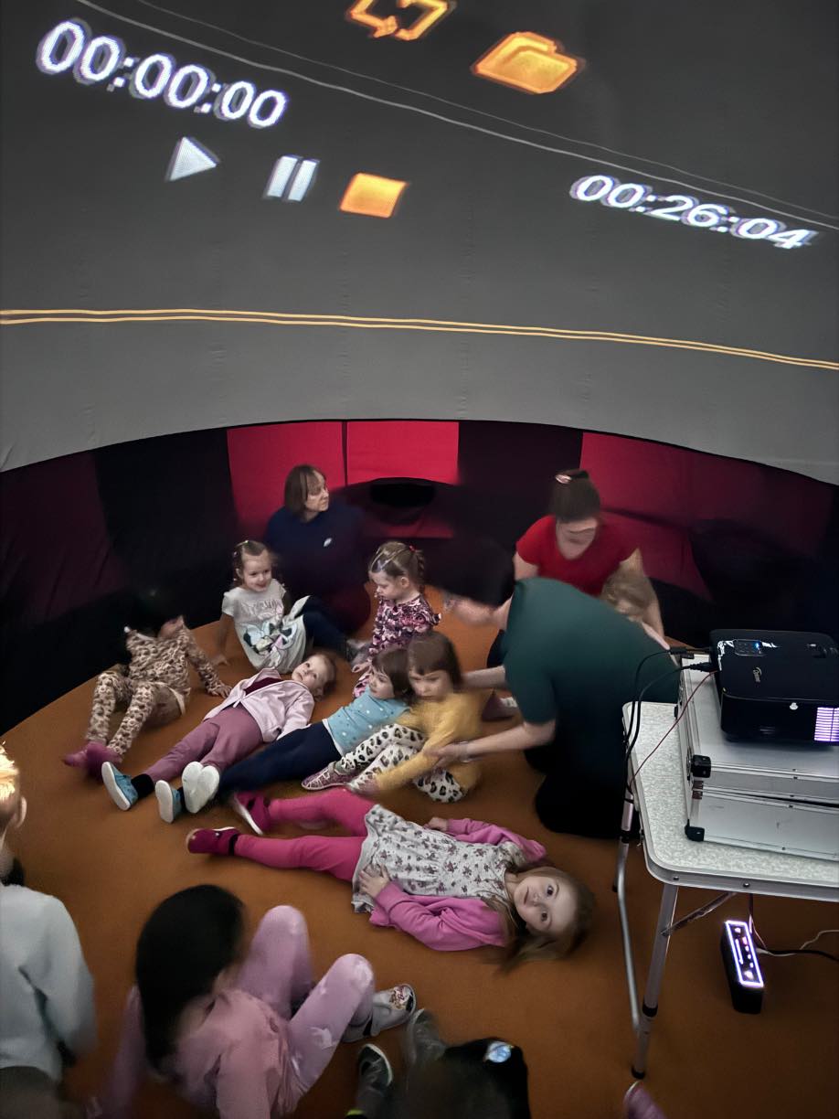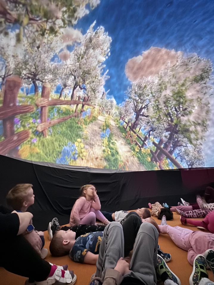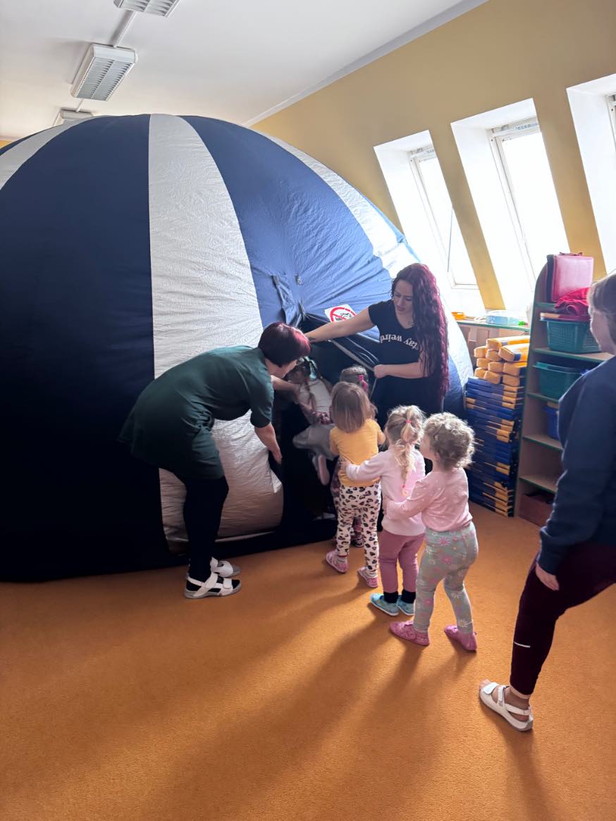 V pondělí 24. 2. proběhla v dopoledních hodinách vzdělávací projekce v technologii 360°, odhalující fakta o cestě slunce po obloze se změnami ročního období. Ve speciálním rozkládacím stanu, který po nafouknutí dostal tvar kopule, měly děti možnost zhlédnout příběh o malé holčičce, která se vydala na prázdniny k dědečkovi, kde poznávala rozmanitost počasí a světa kolem sebe. Děti měly možnost zažít pocit, jaké to je nacházet se v hrozivě ledových teplotách, ale i v perném horku. Promítání v tomto přenosném kině dětem umožnilo vzbudit zájem o okolní svět, a také doplnit znalosti a uspokojit svou zvědavost. Děti sledovaly projekci s velkým zájmem a byl to pro ně nevšední zážitek. Renata Žižlavská
